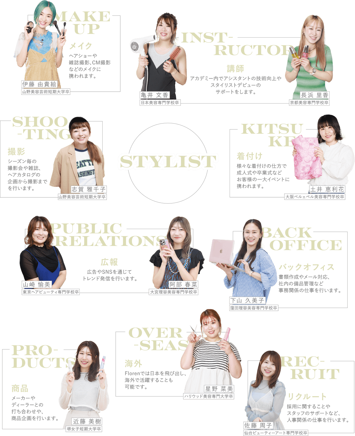 | 募集職種 | ①アシスタント ②スタイリスト |